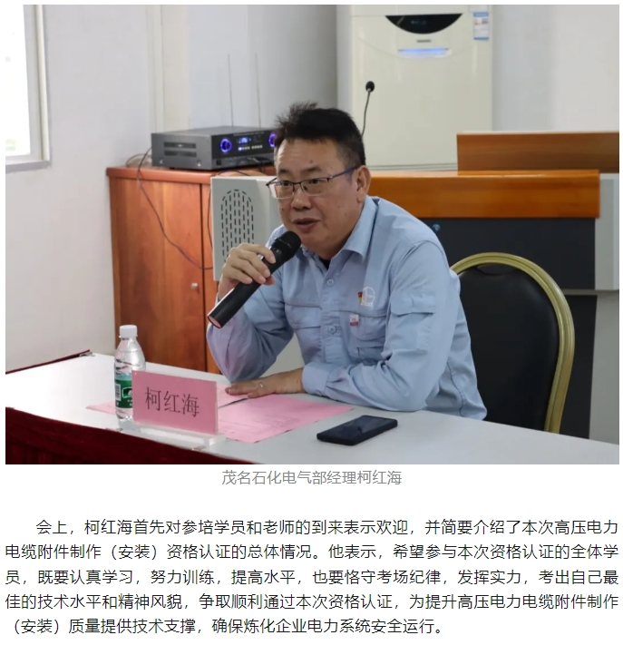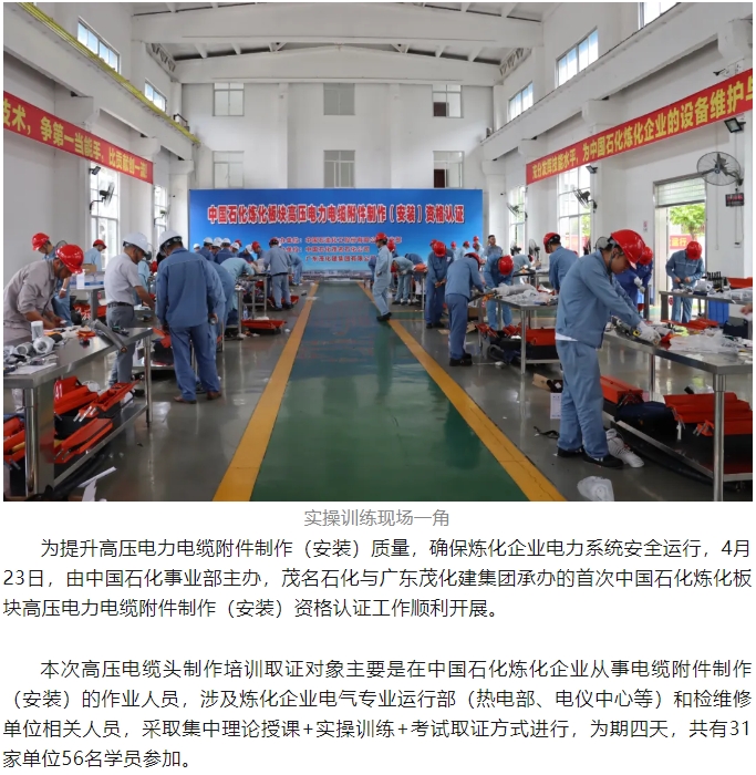 首次中國石化煉化板塊高壓電力電纜附件制作(安裝)資格認(rèn)證在茂名順利舉行