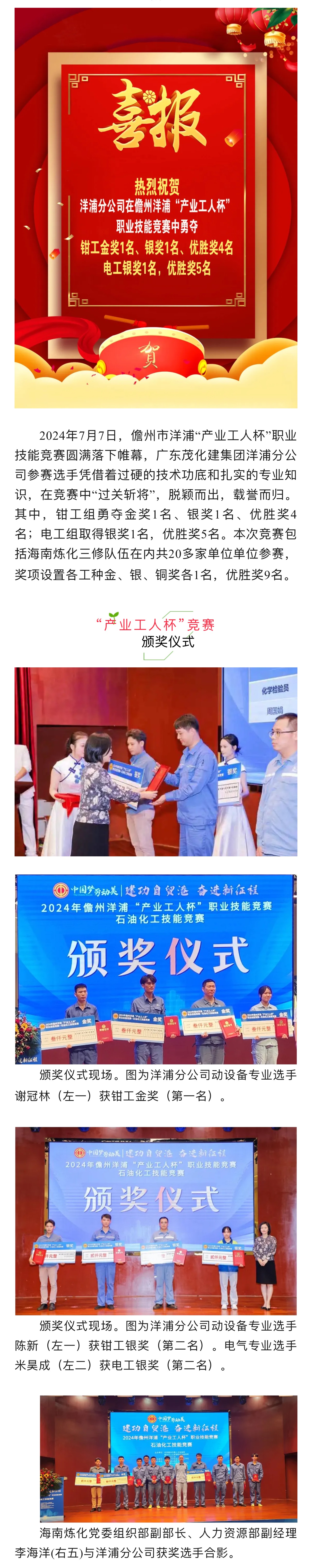 喜報:“產業工人杯”技能競賽|洋浦分公司滿載而歸