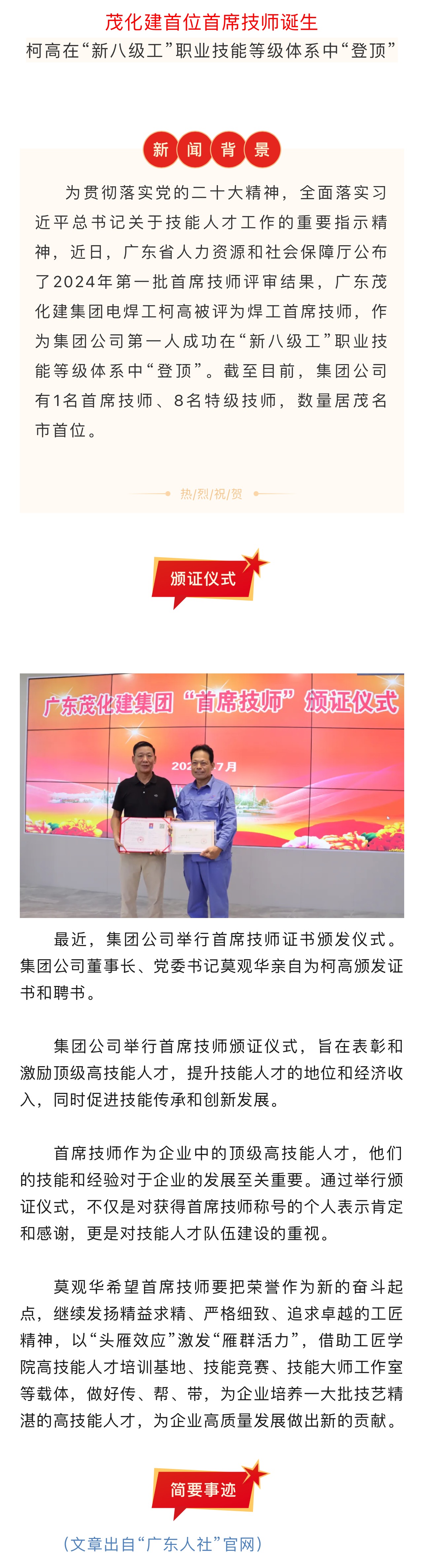 ?喜報|茂化建首位首席技師誕生!