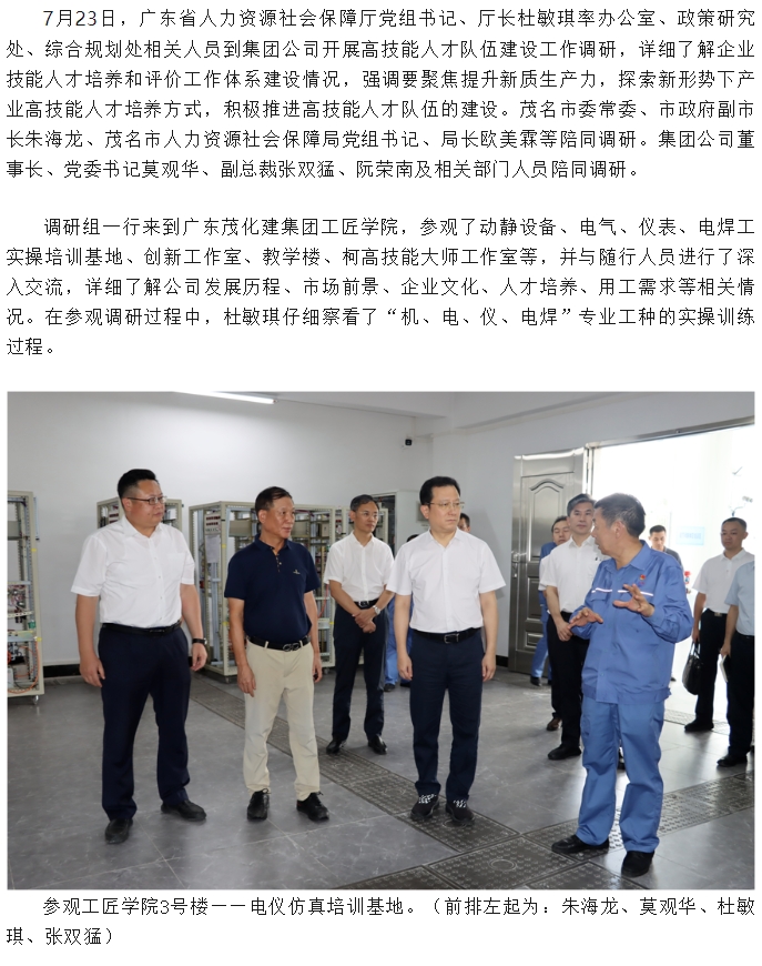 廣東省人社廳到集團(tuán)公司調(diào)研高技能人才隊伍建設(shè)工作