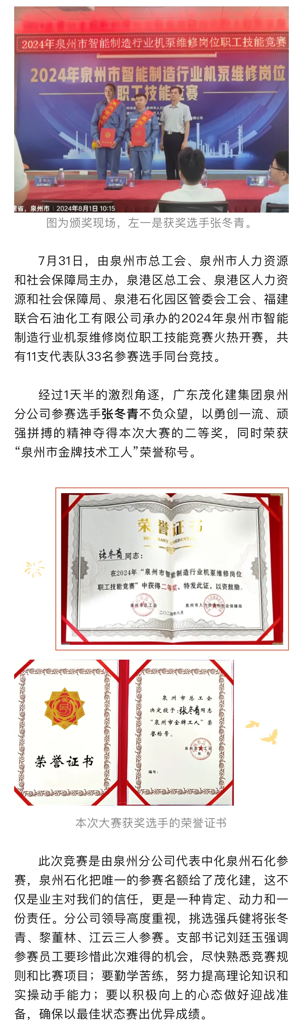 泉州分公司在泉州市維修機泵技能競賽創佳績