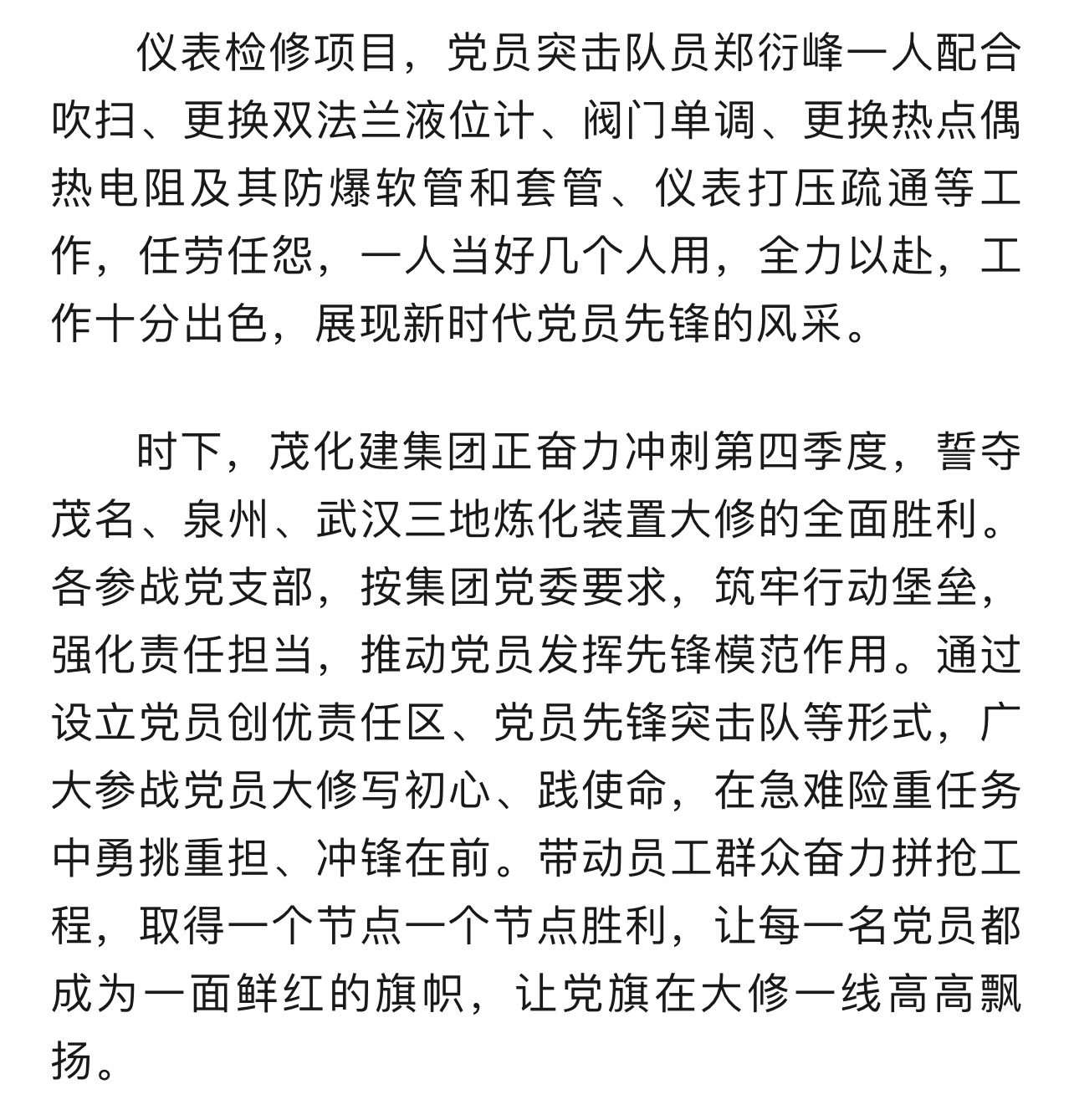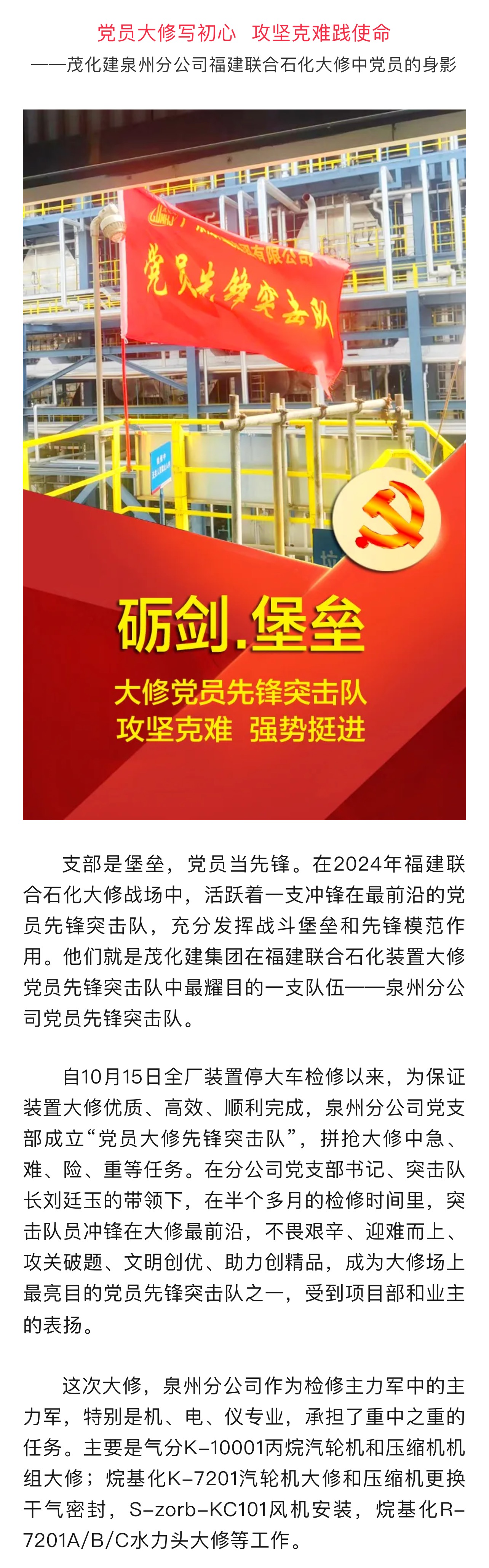茂化建泉州分公司福建聯合石化大修中黨員的身影