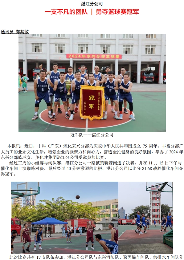 湛江分公司勇奪籃球賽冠軍