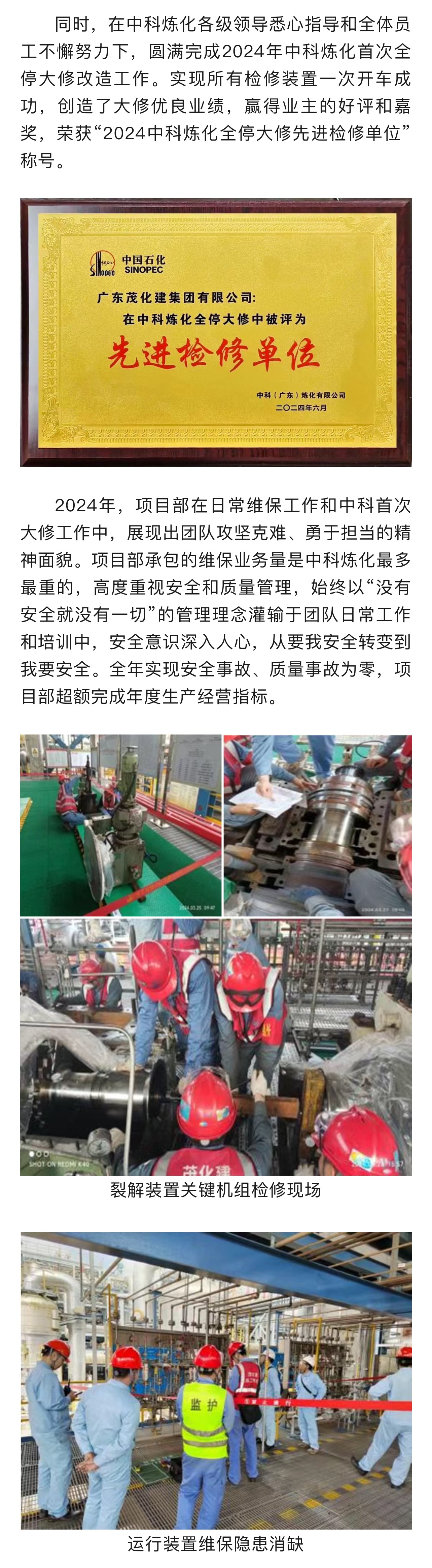 喜報|榮獲2024年中科煉化 “業務外包星級承包商”稱號