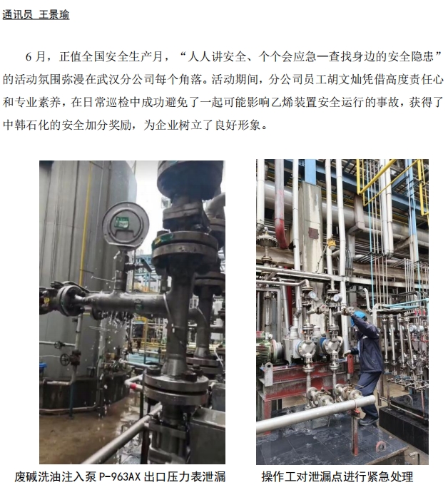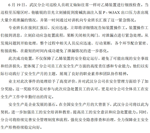武漢分公司員工巡檢立功,獲業主安全加分獎勵