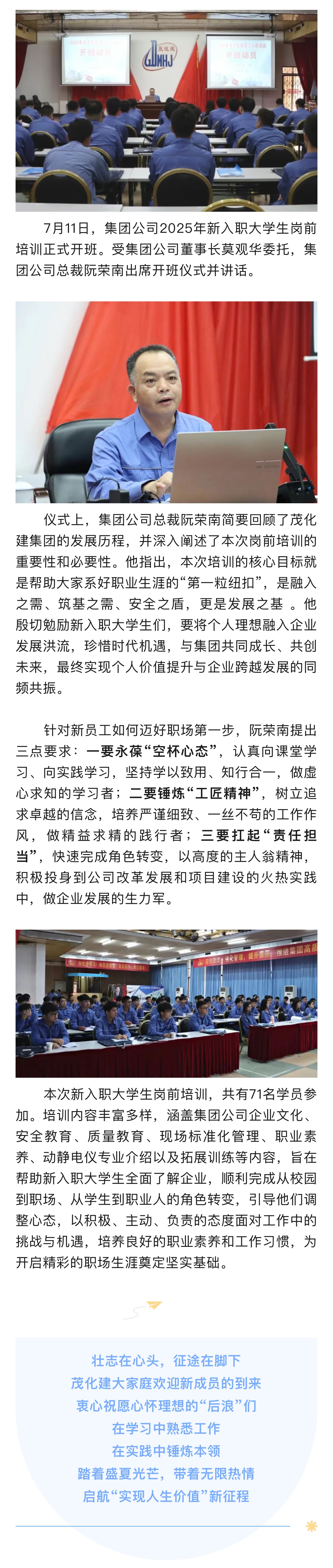 萌新報到!廣東茂化建集團2025年新入職大學生崗前培訓正式開班