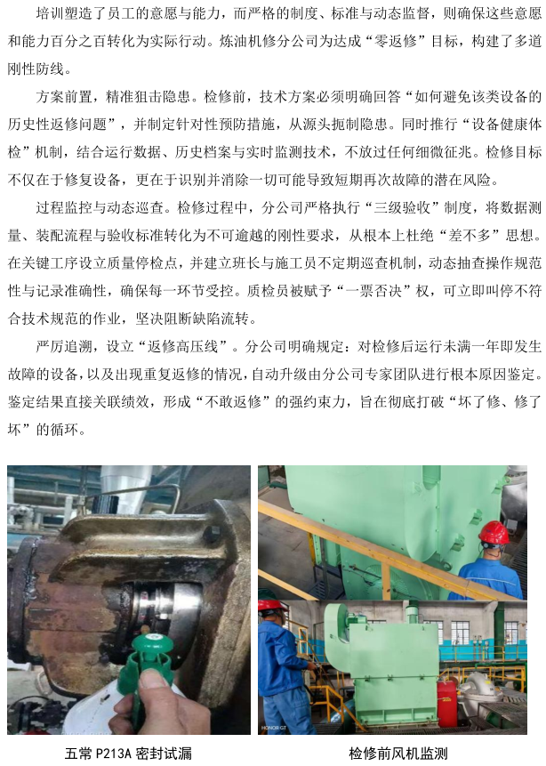 煉油機修分公司力推“零返修”質(zhì)量行動