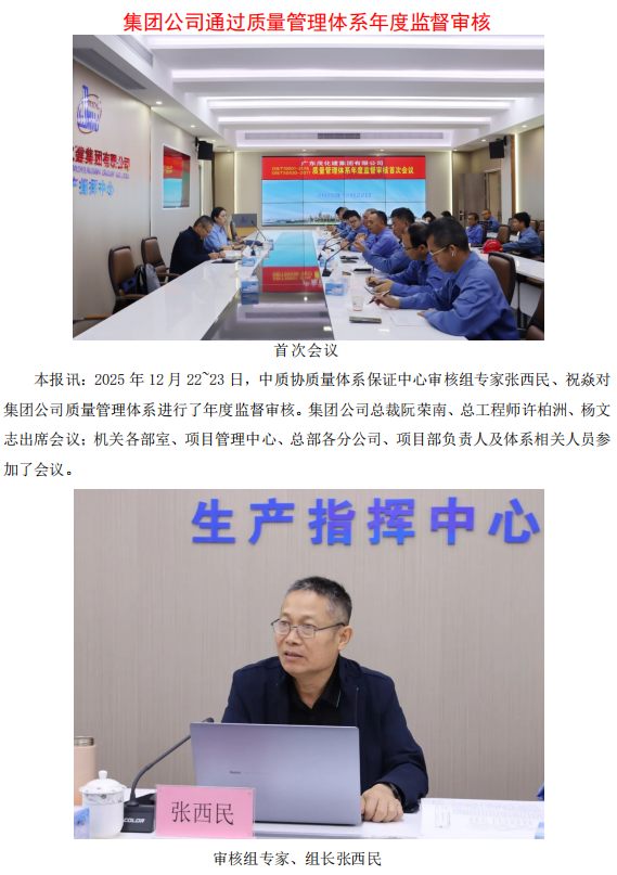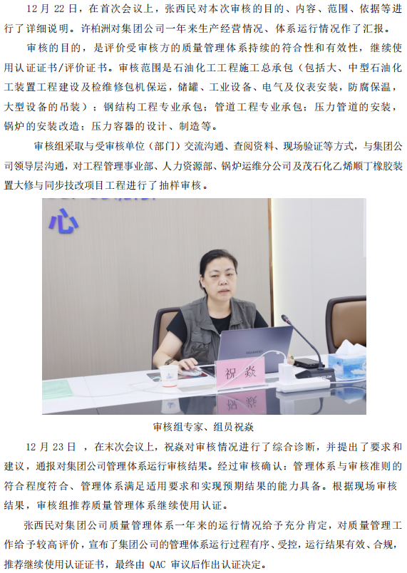 集團公司通過質量管理體系年度監督審核